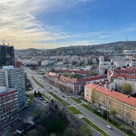Az Apartment With Panoramic View By The Hockey Arena biztosít egy felszerelt konyhát minden szükséges eszközzel ételek készítéséhez. A Ceska buszmegálló egy 5 perces sétára fekszik.